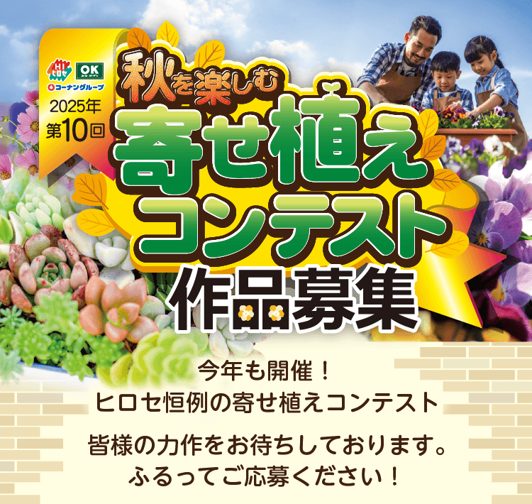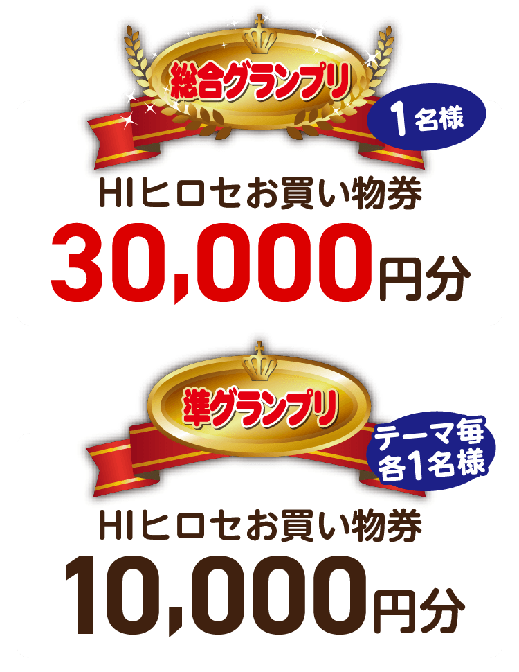 - 応募作品すべての著作権は製作者本人に、使用についての諸権利は主催者である株式会社ホームインプルーブメントひろせに属するものとします。応募者は、応募された時点で上記の規定をご承諾いただいたものとみなし、規定に反する作品の入賞が判明した場合は、入賞の取り消しならびに賞の返還を請求することがあります。
