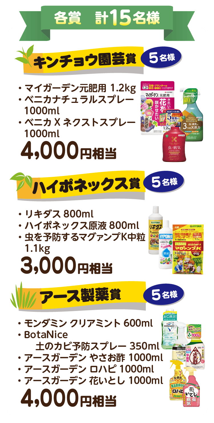 - 応募期間中何度でも投稿することができますが、同一アカウントおよび同一住所、同一人物への賞品のお渡しは1点までとさせていただきます。
